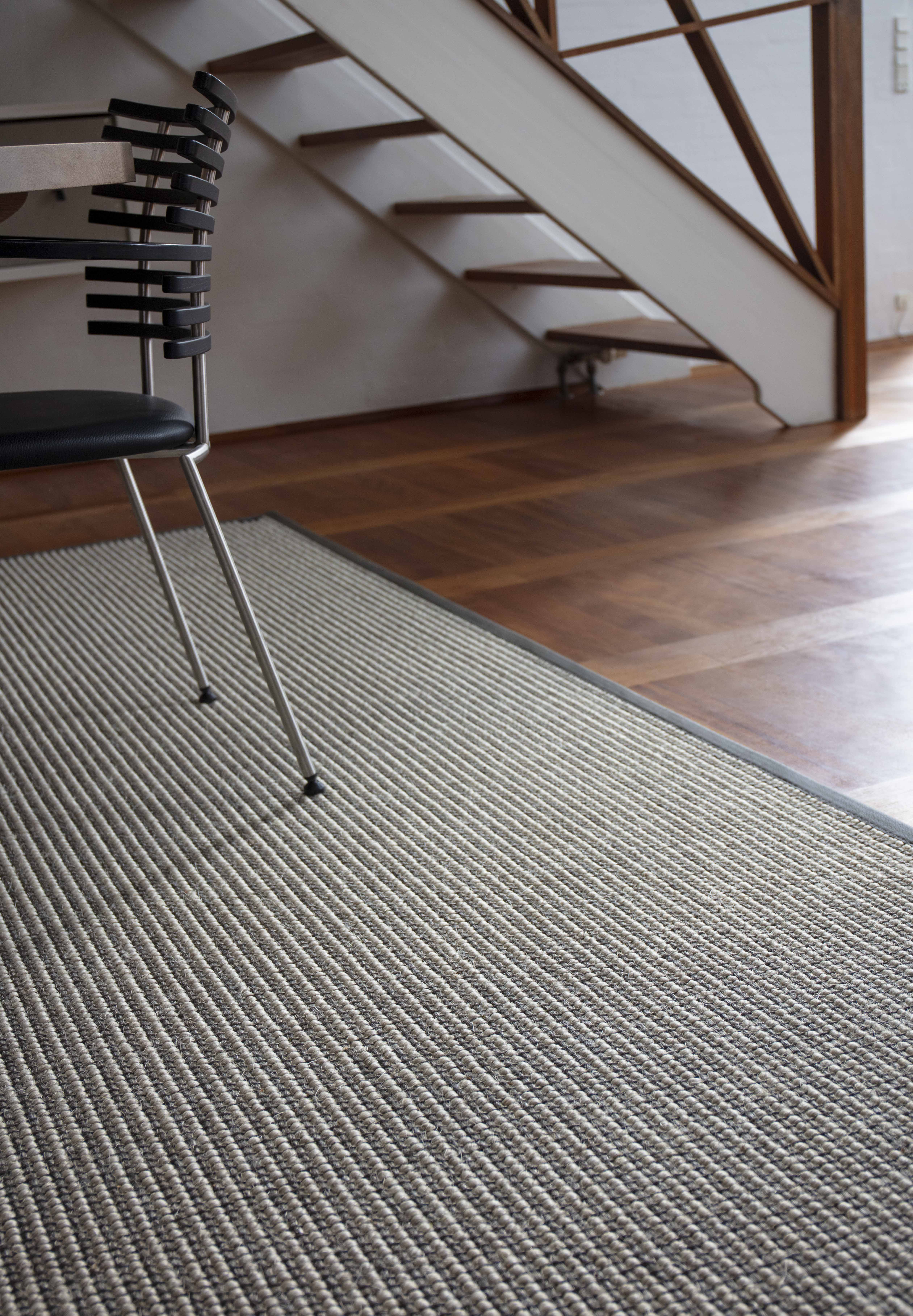 Thika is woven with coarse yarn in 2 colours. A small carpet sample of Thika can give the impression of a striped carpet, but when the finished carpet lies on the floor, the stripes look more like a beautiful melange of the two colours.